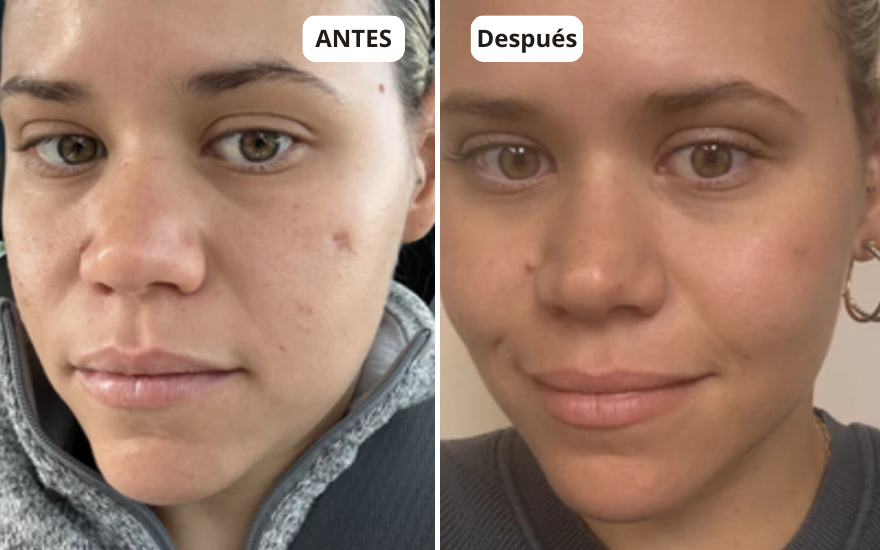 Gracias al ácido hialurónico, tu piel retiene hasta 1000 veces su peso en agua para un efecto repulpado inmediato. La tirantez desaparece, el tono se vuelve más uniforme y la piel recupera una textura suave y elástica. Un tratamiento exprés ideal para lucir fresca, descansada y luminosa.
